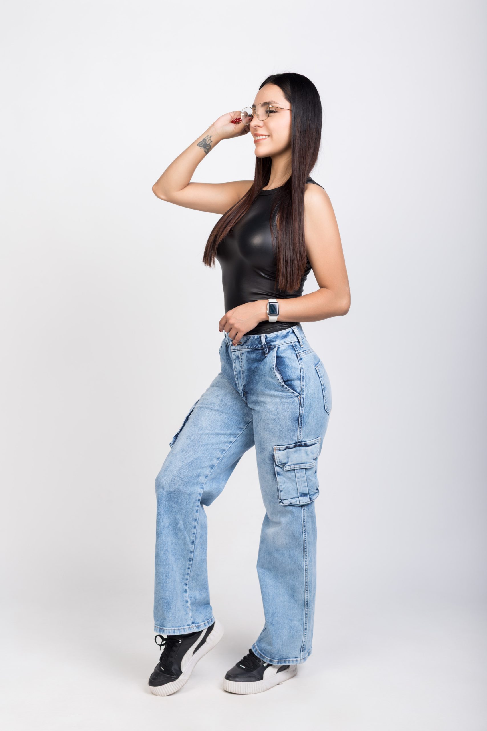 Tenemos tallas de la 5 a la 13. Jeans hechos de 97% mezclilla y 3% spandex.